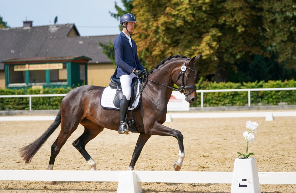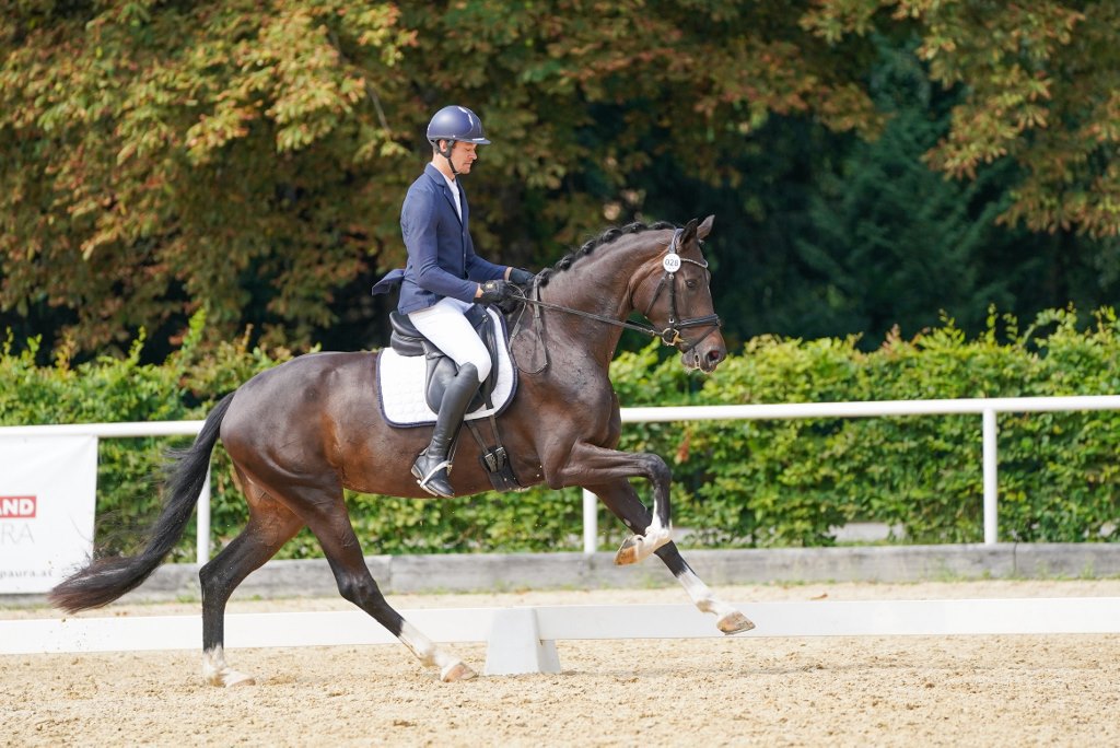 Die 3-jährige Stute GHEDINA überzeugte mit einer sehr guten Vorstellung von Michael Spörk (Team „The Blues Equestrian“). Dank der super Vorbereitung zeigte Ghedina einen ausdrucksstarken Trab, der mit 8,5 bewertet wurde. Der Galopp, der viel Potenzial für die Zukunft erkennen ließ, wurde mit 8,0 benotet. Mit der Endnote 8,1 erreichten sie den 3. Platz.