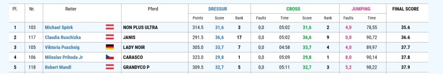 Ergebnisse Dressur- und Springbewerbe, Vielseitigkeit: ihremeldestelle.at